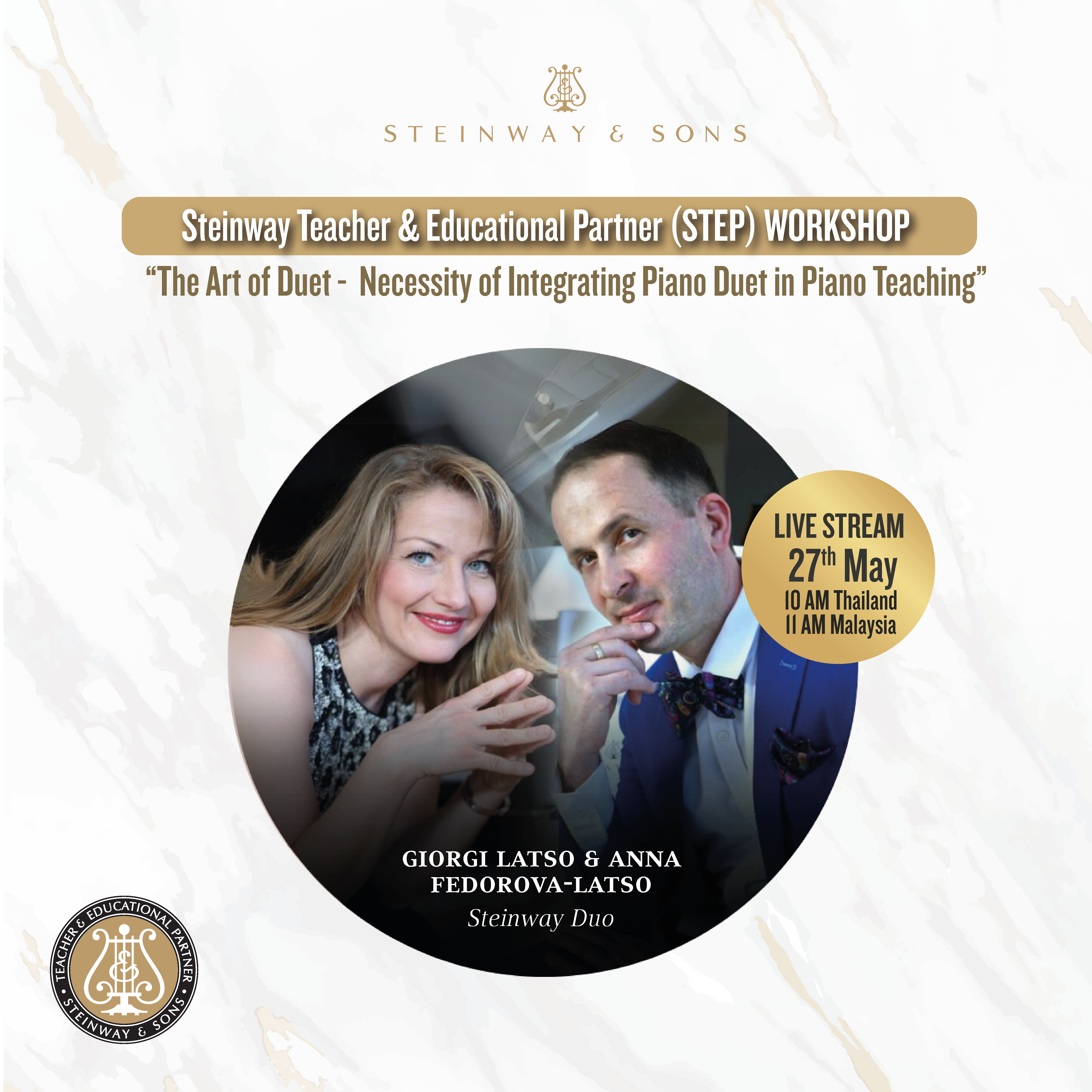 Steinway Thailand will be presenting "The Art Of Piano Duet: Necessity of Integrating Piano Duet in Piano Teaching", a live-streamed piano workshop designed for piano teachers and pedagogues. Led by Giorgi Latso and Anna Fedorova-Latso, the Steinway Duo known as The Latsos, this online workshop will delve into the rich history of piano duet and its integration into education, covering invaluable insights into the technical intricacies of duet performance.